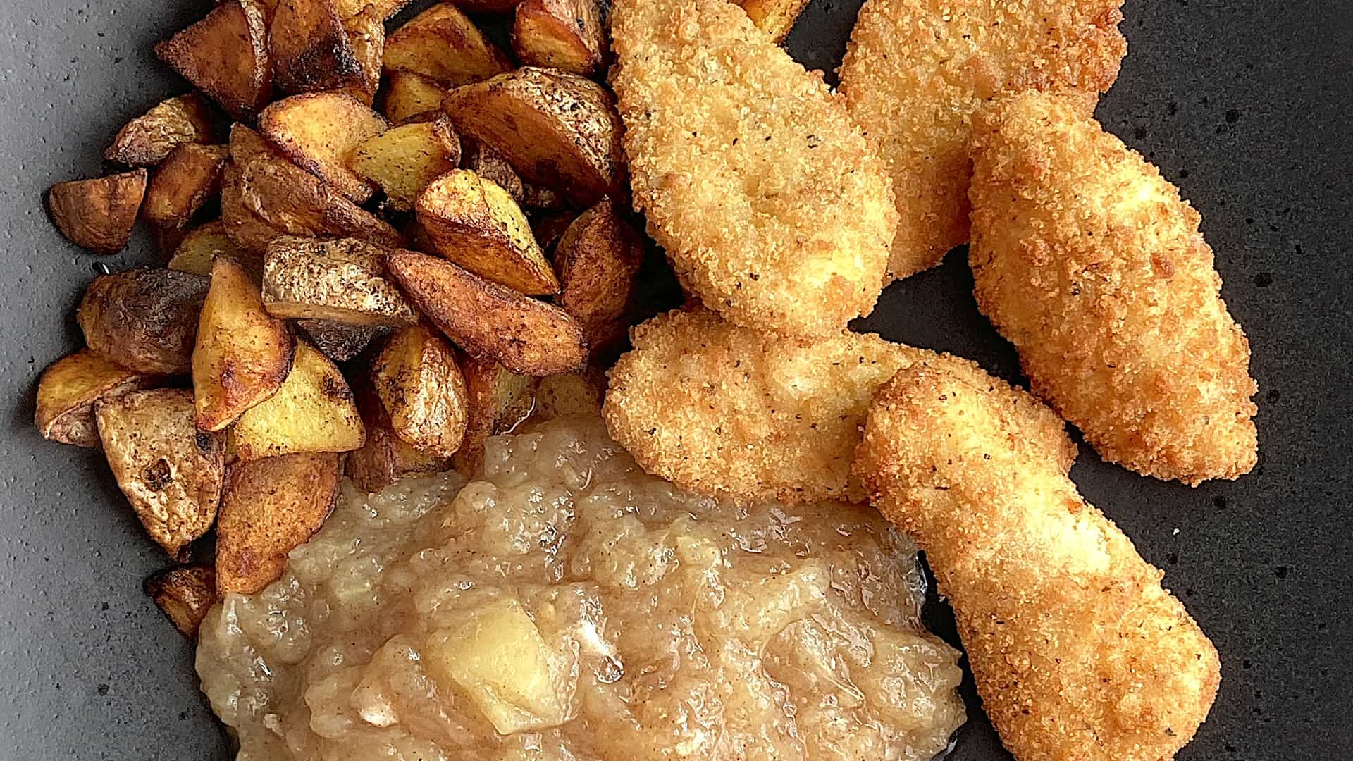 Voor de kip heb je een oven of airfryer nodig. Voor de aardappeltjes een koekenpan en voor de appelmoes een kookpan.