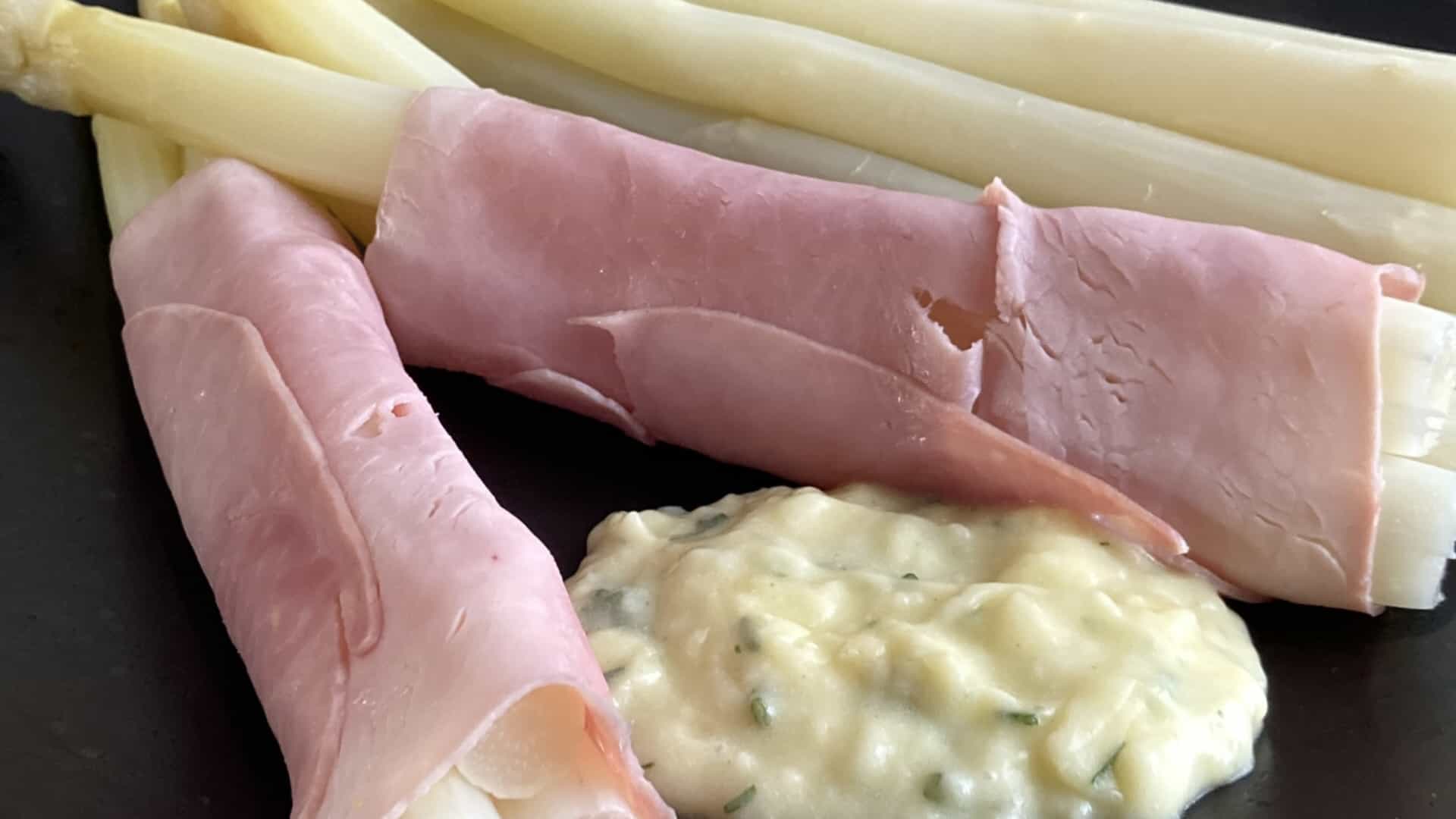 - Kook de asperges in een laagje water met een snufje zout en een scheutje citroensap voor 5 minuten.