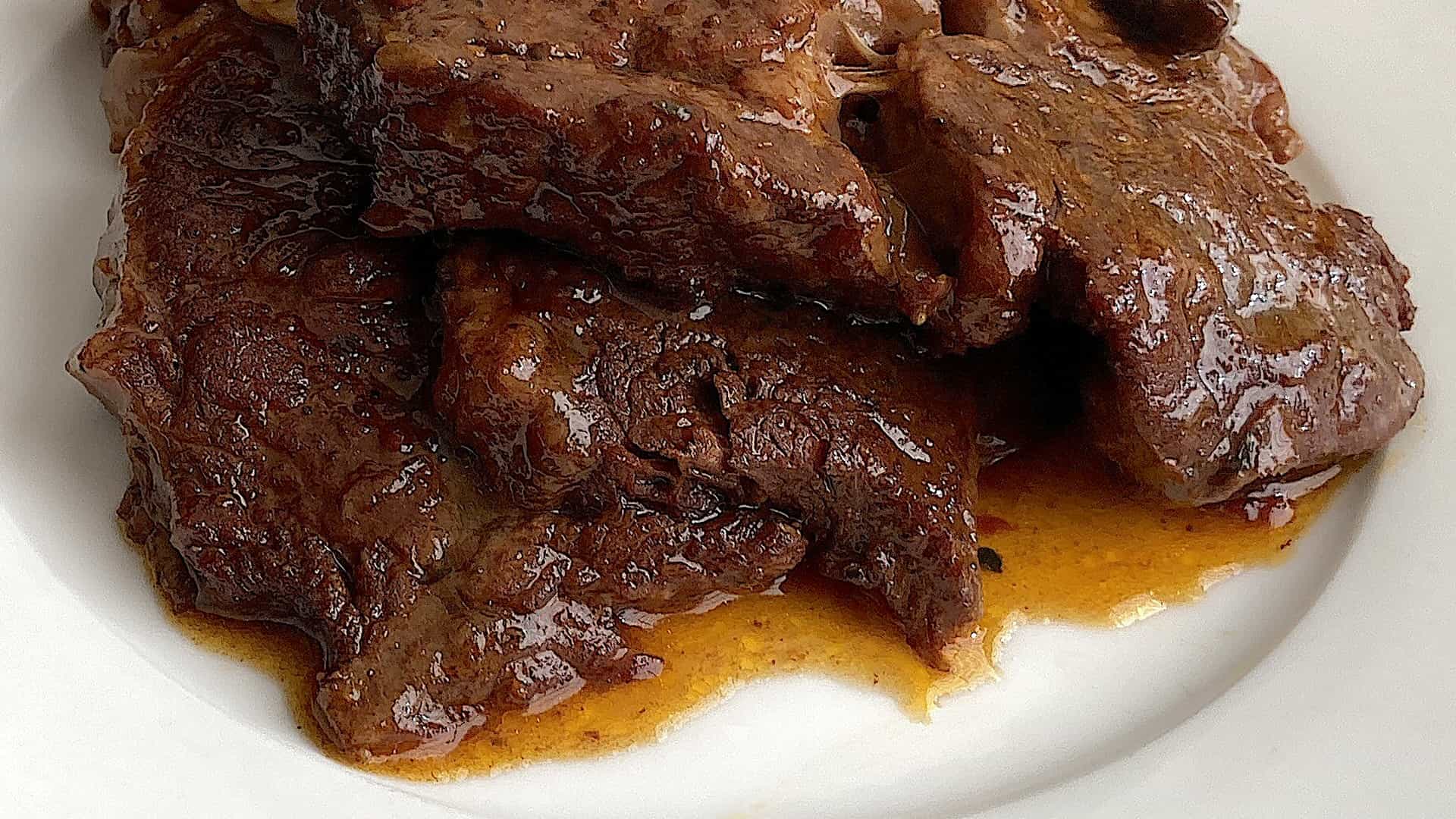 Wil je het stoofvlees op z'n Limburgs. voeg dan 3 plakjes verkruimelde ontbijtkoek toe, dan wordt de jus dikker.