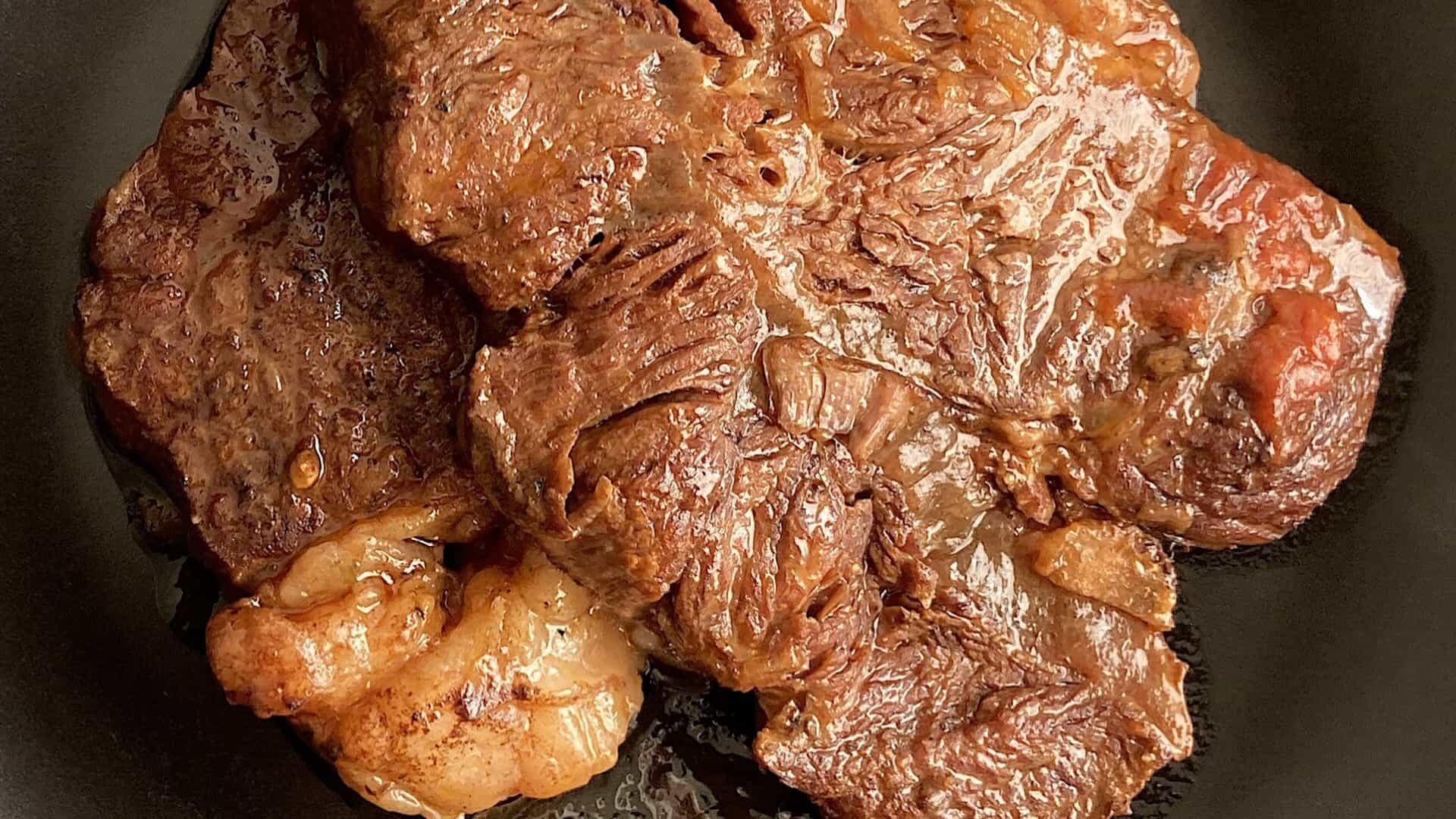 Voor het sukadevlees heb je een braadpan nodig.