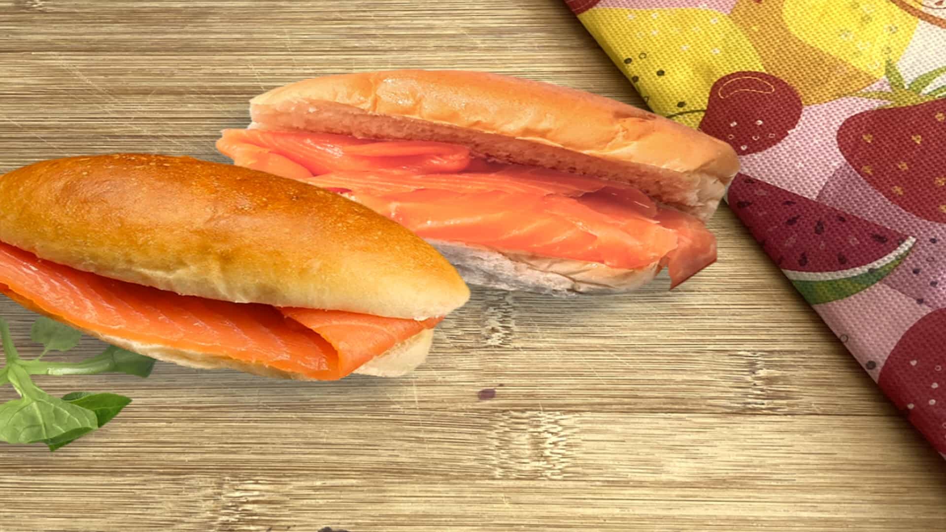 De smaak van de gerookte zalm komt het beste tot z'n recht zonder extra toevoegingen op een wit broodje.