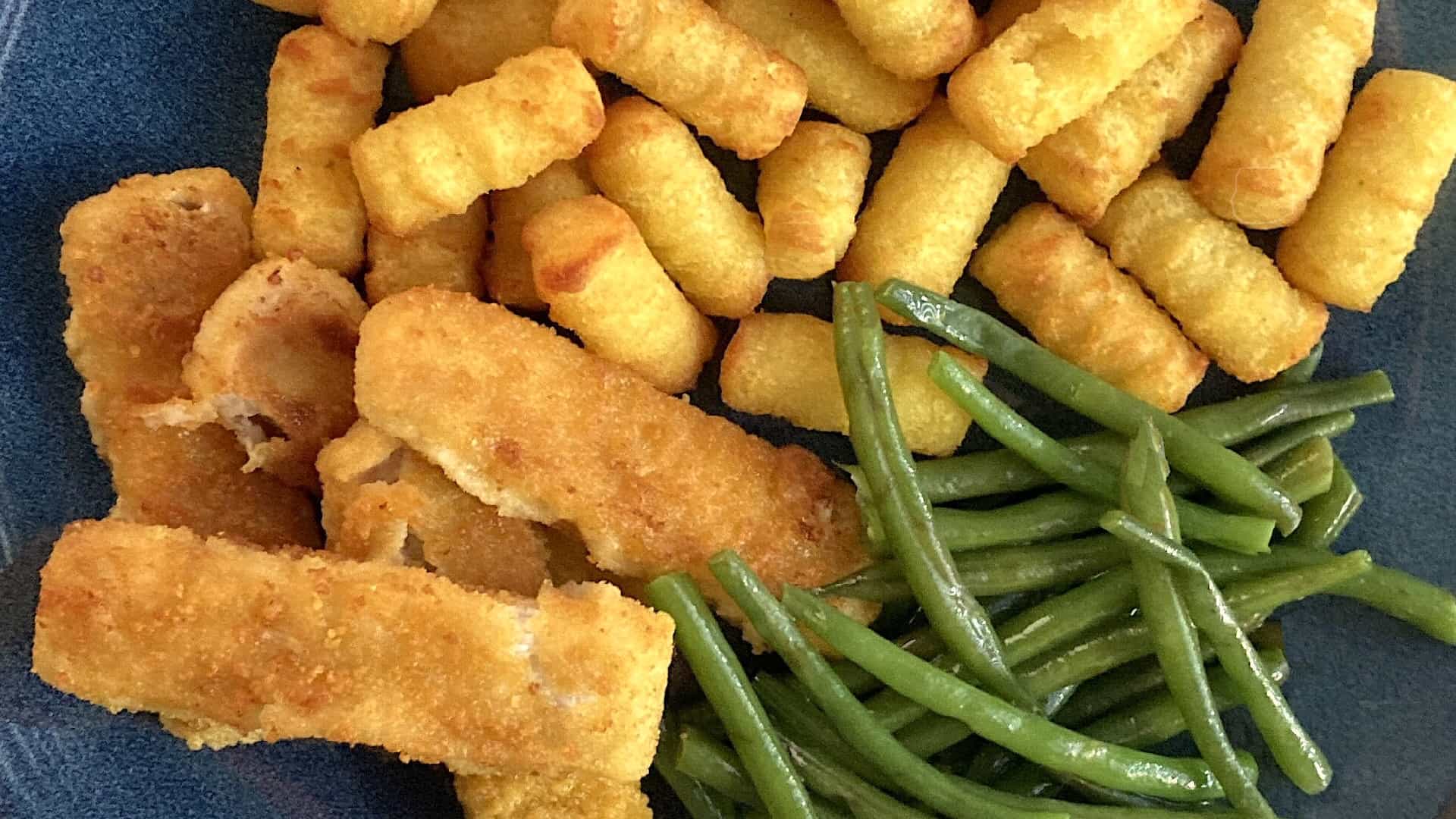 Voor de vissticks heb je een koekenpan nodig. Voor de aardappel kroketjes een airfryer en voor de haricots verts een kookpan.