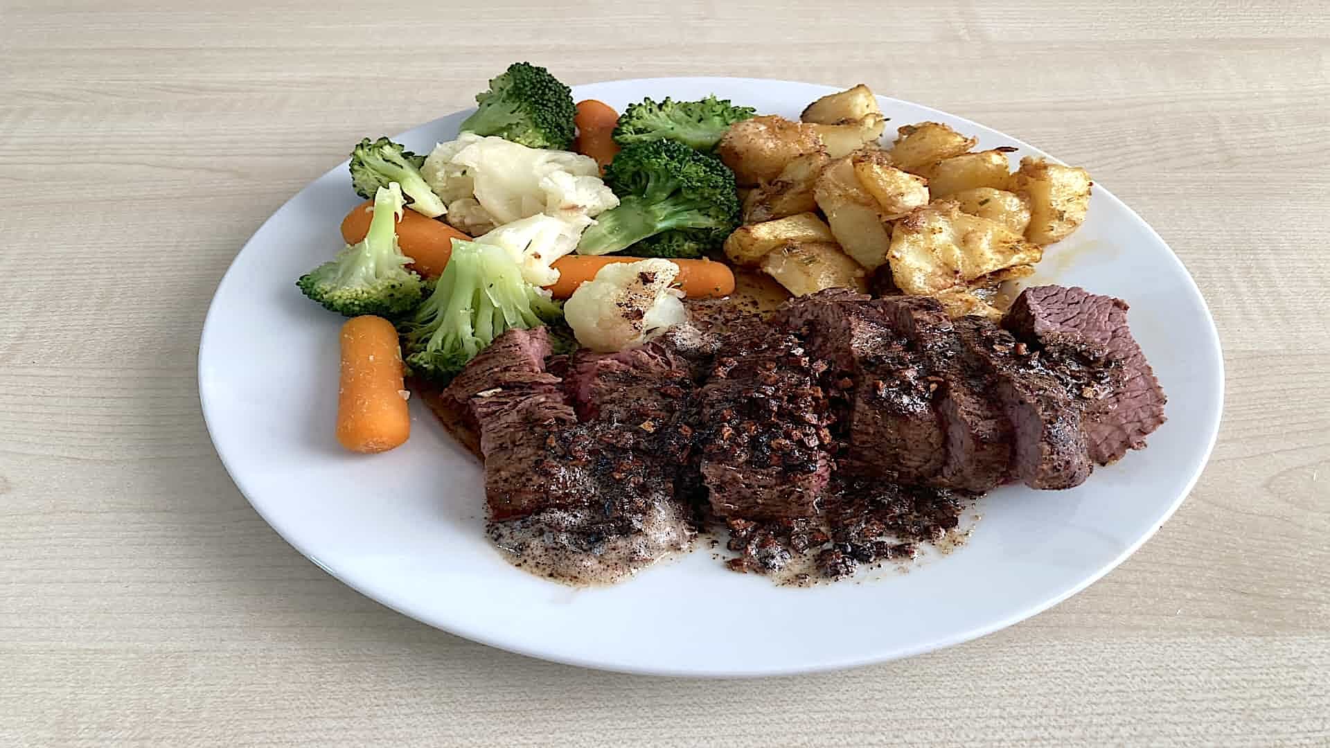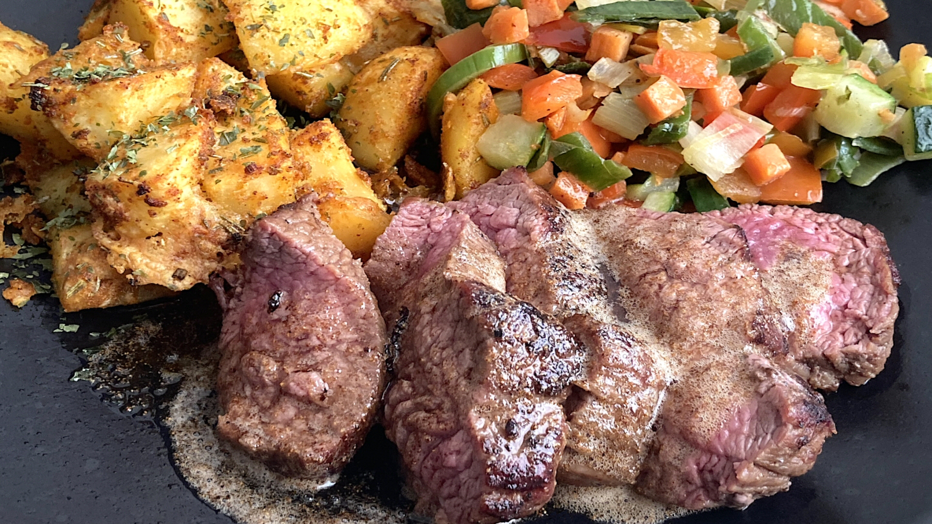 Voor de diamanthaasjes heb je een koekenpan nodig, voor de groente een wok en voor de aardappelen een oven.