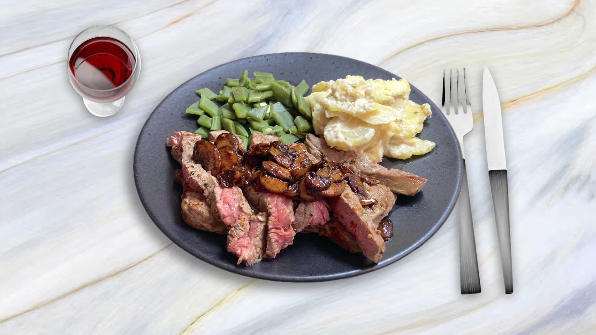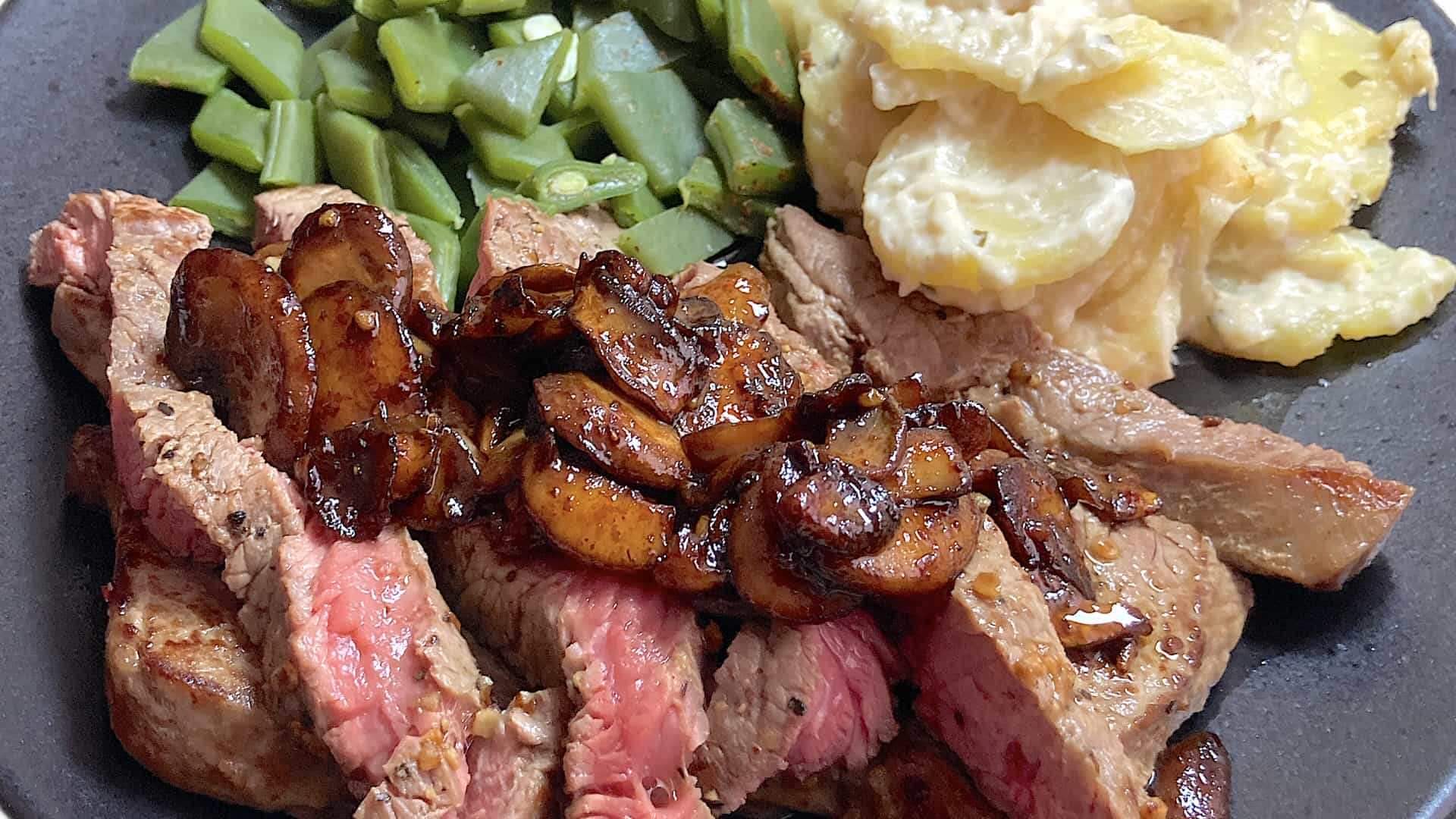 Voor de ribeye en de champignons heb je een flinke koekenpan nodig. Voor de aardappelgratin een oven en voor de snijbonen een kookpan.
