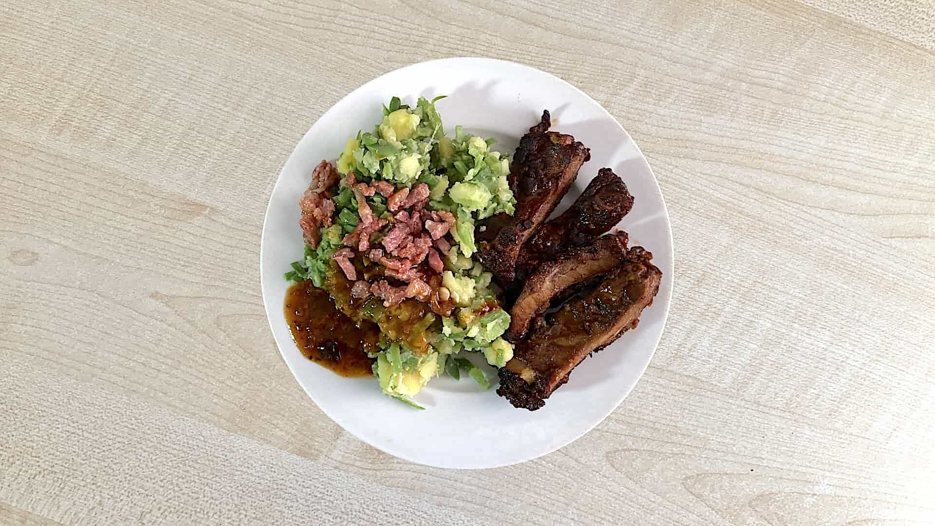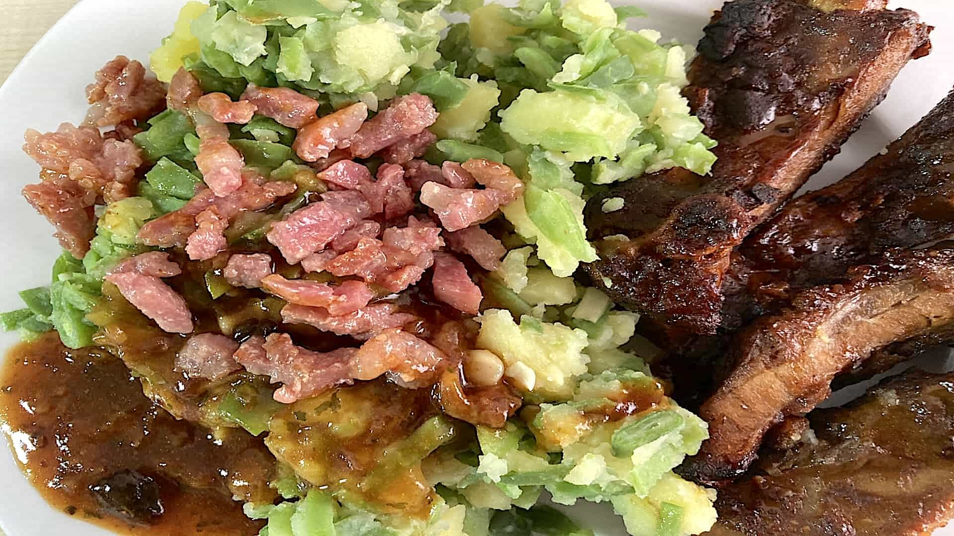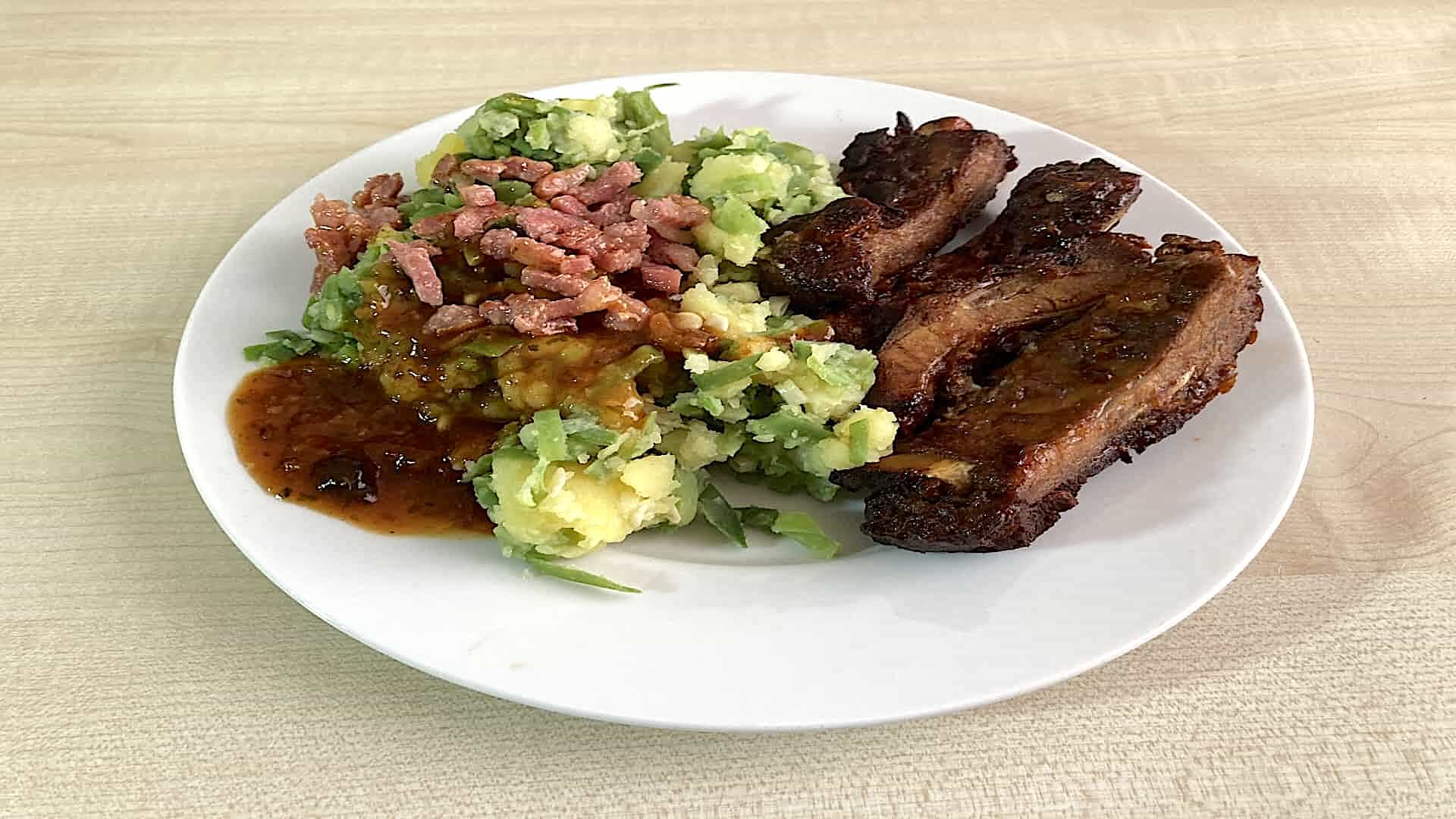 Voor de spareribs heb je een oven nodig. Voor de snijbonen en aardappelen een kookpan en voor de spekreepjes een koekenpan.