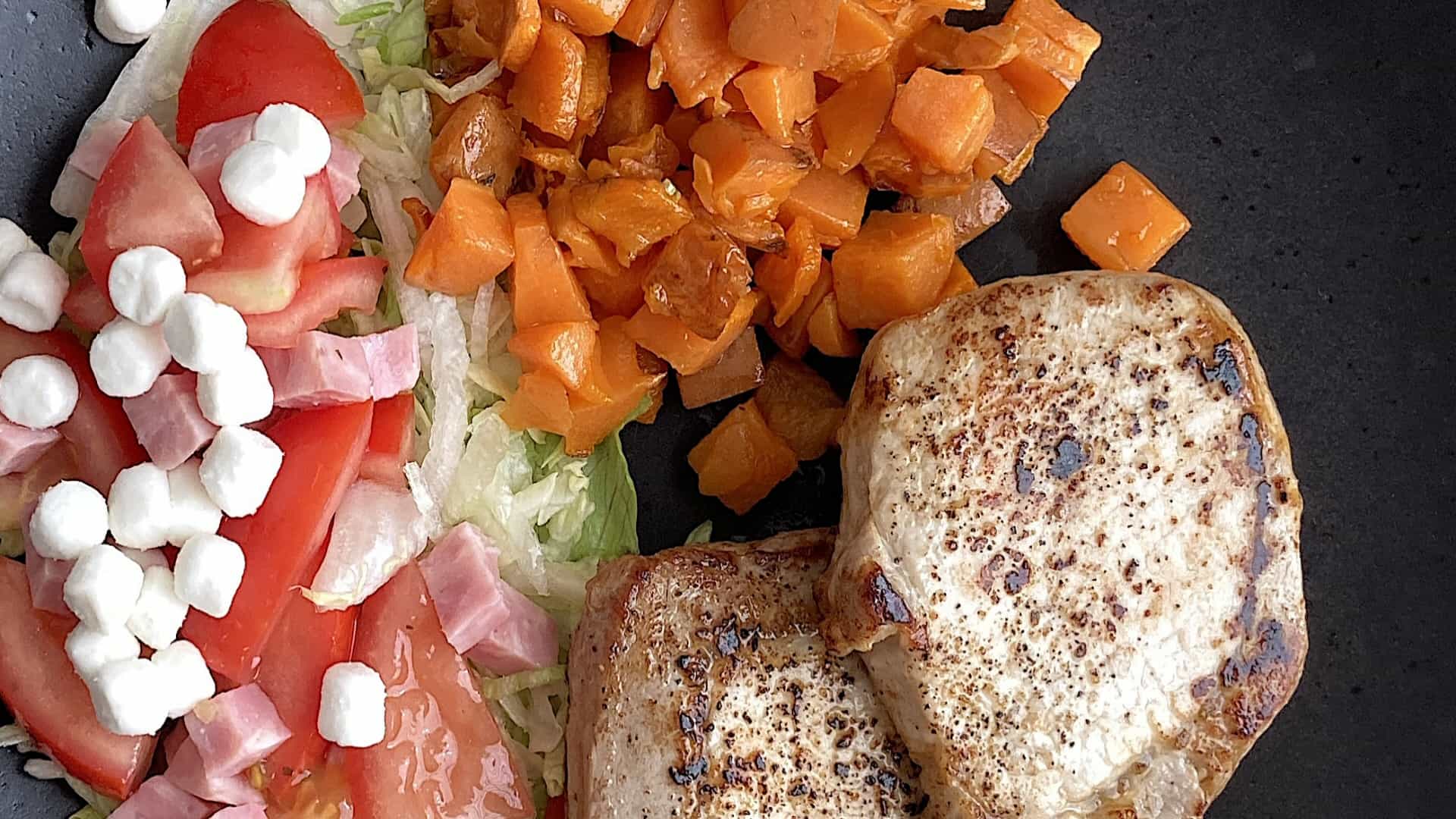 Serveer de het geheel op een bord met 1 of 2 ribeyes.