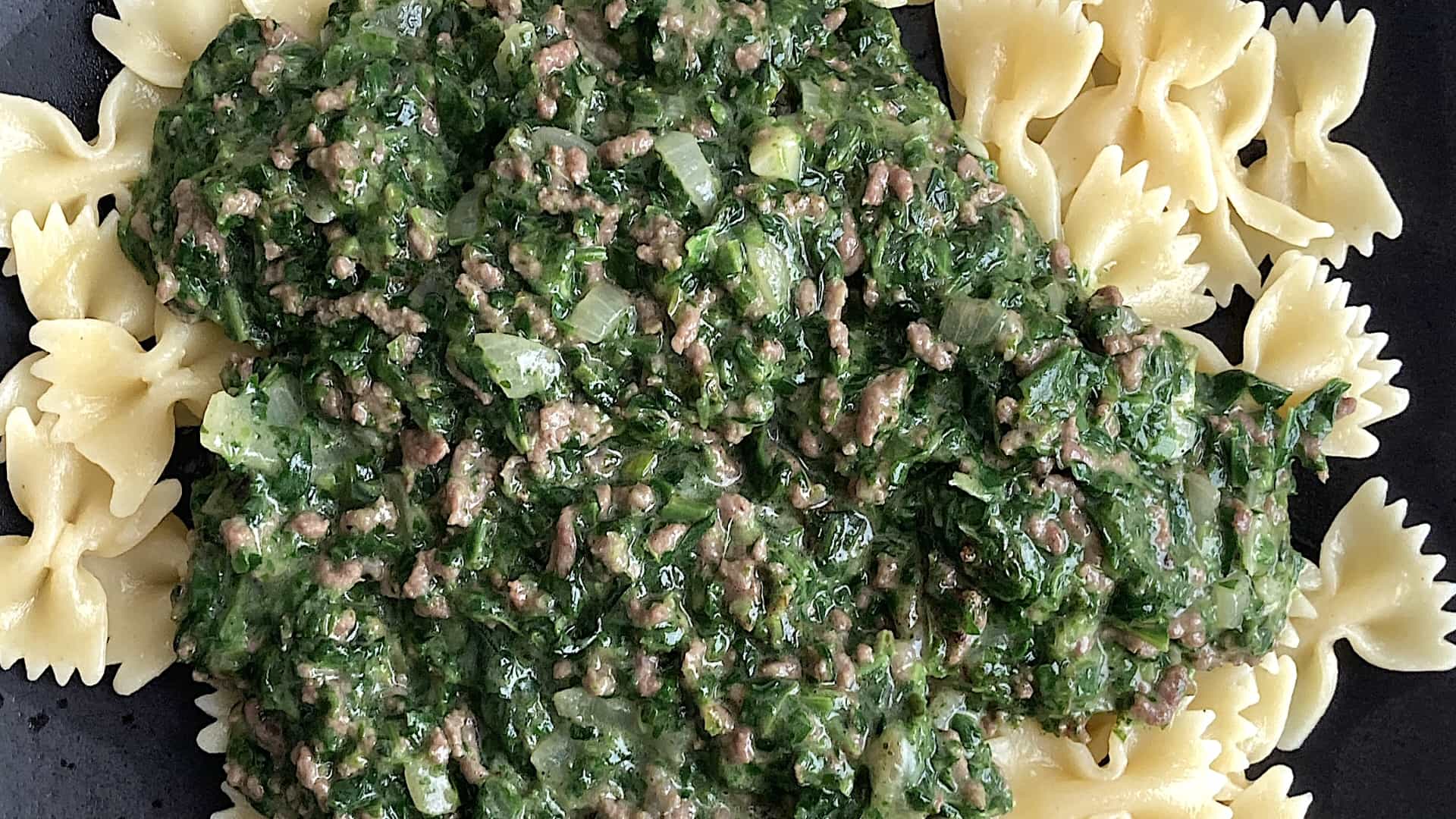 Je kunt, in de hapjespan, de pasta ook door het spinaziemengsel roeren.