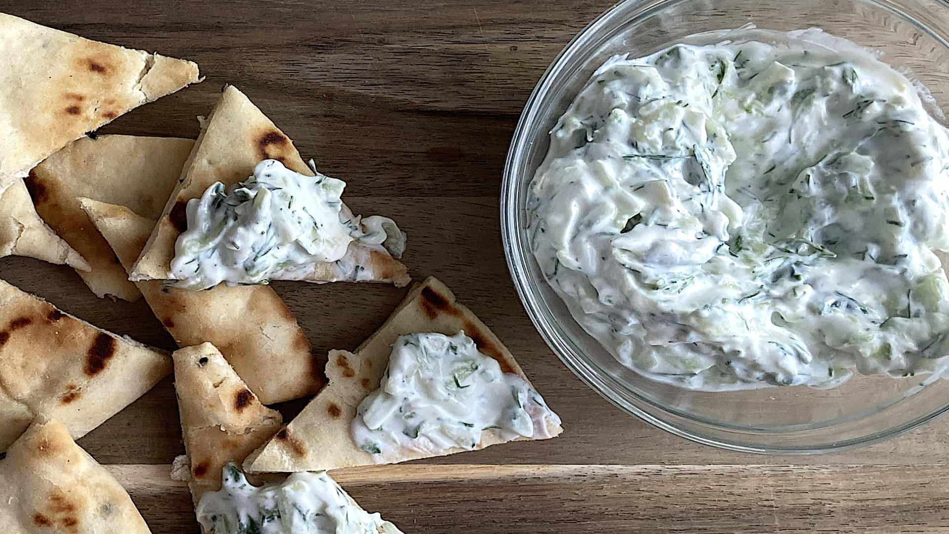Voor de tzatziki is een mengkom nodig en een rasp en zeef. Voor het naanbrood een koekenpan.