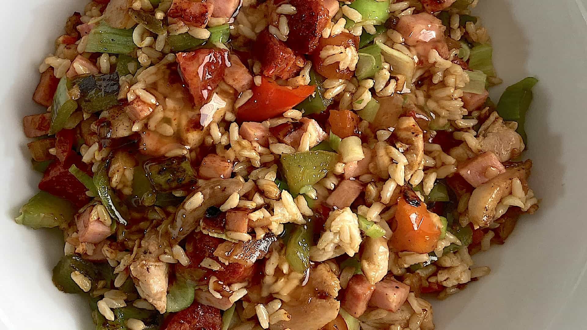 Serveer op een diep bord en doe er wat zoete Chilisaus op.