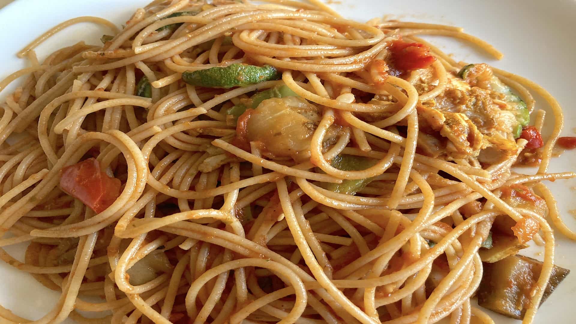 Voor de spaghetti heb je een flinke kookpan nodig en voor de groente een koekenpan.