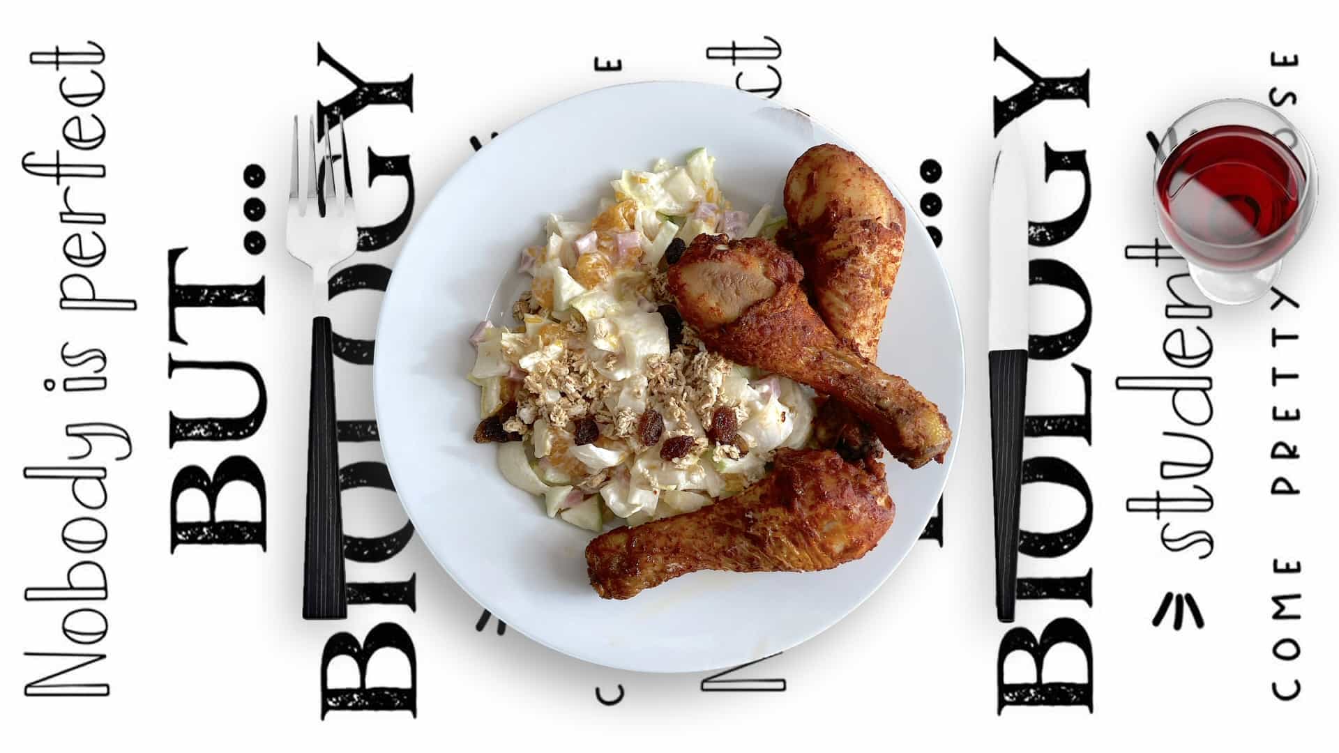 De gegrilde kippenbouten kun je ook vervangen voor kant-en-klare kipdrumsticks.