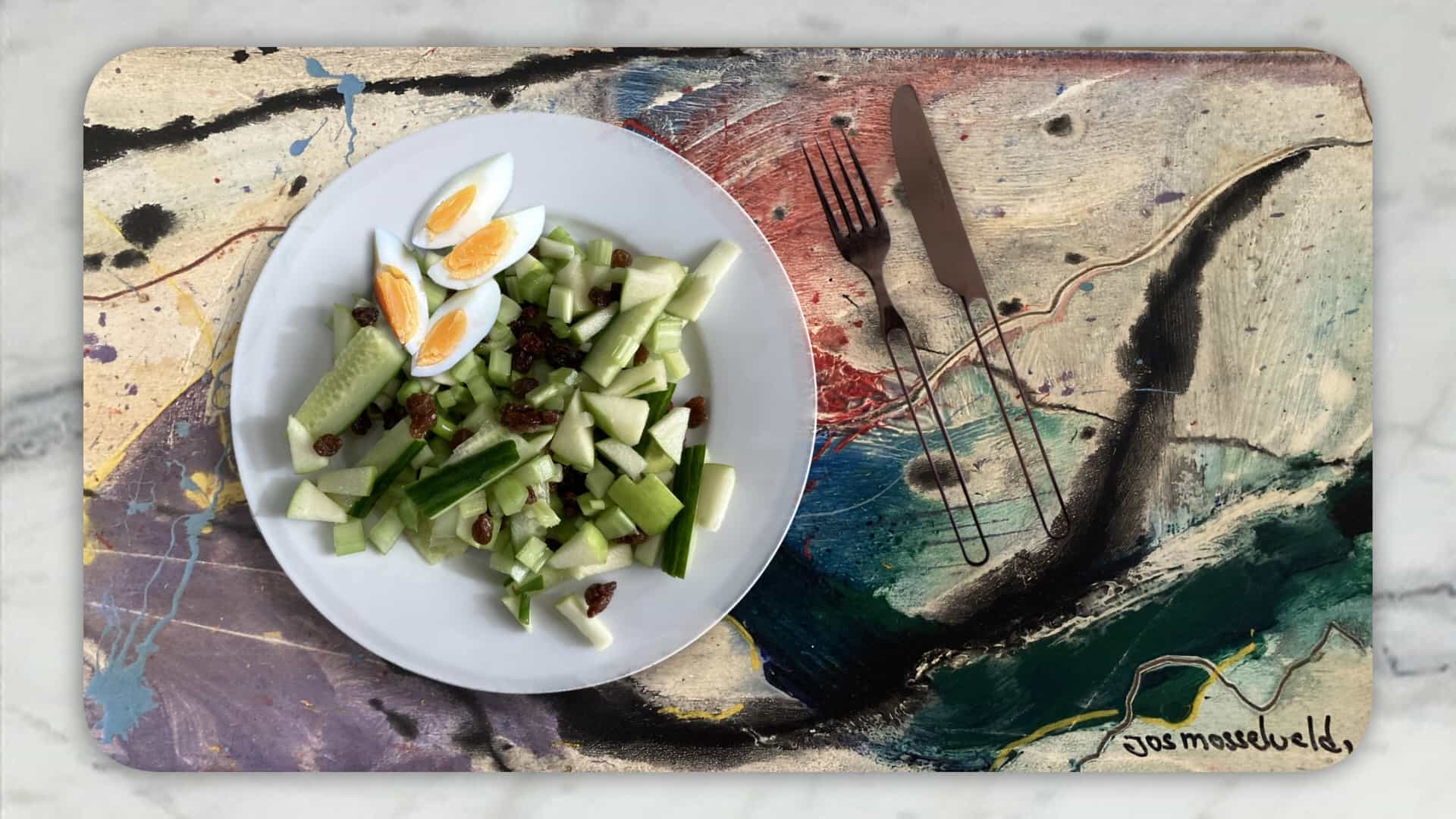 Gezonder kan bijna niet, met deze frisse bleekselderijsalade met een eitje als bijgerecht.