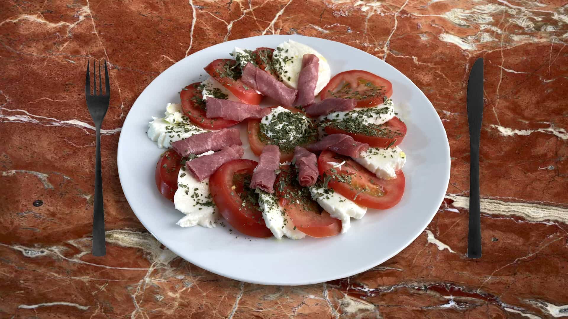 Zelfgemaakte rundvleessalade met corned beef. Zeer eenvoudig en snel klaar