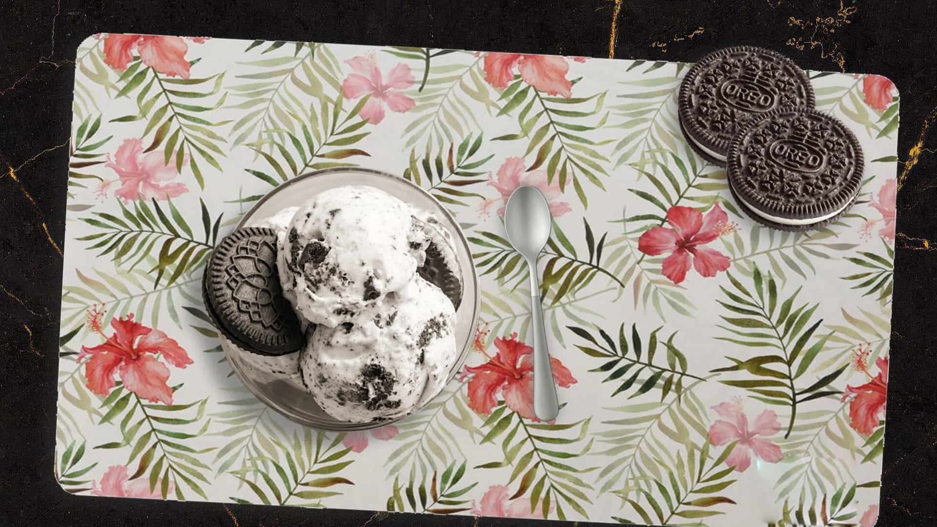 Een geweldige combinatie. Vanille dessertijs met verkruimelde oreokoekjes.