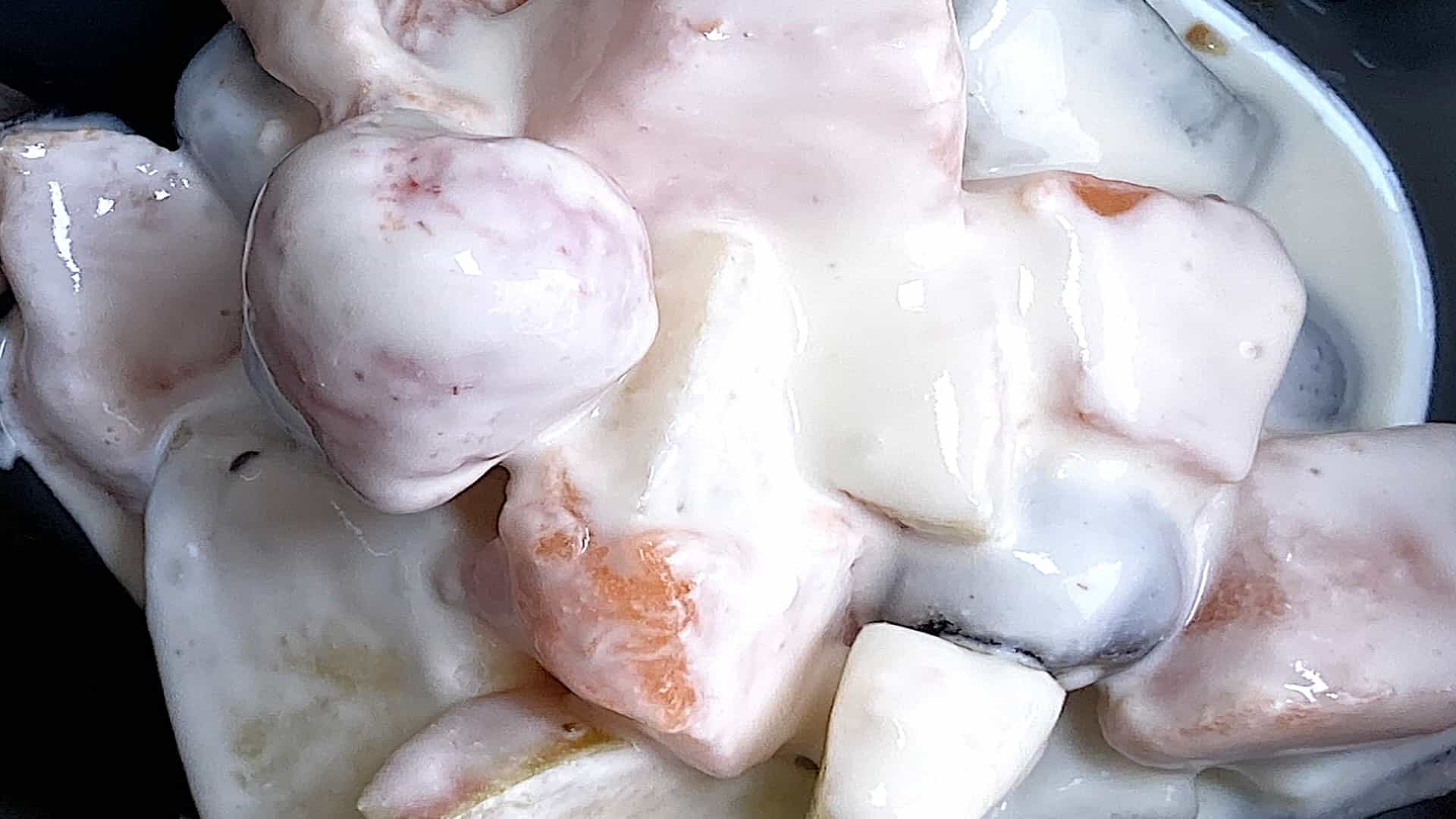 Serveer de fruitsalade in een kommetje of een diep schaaltje.