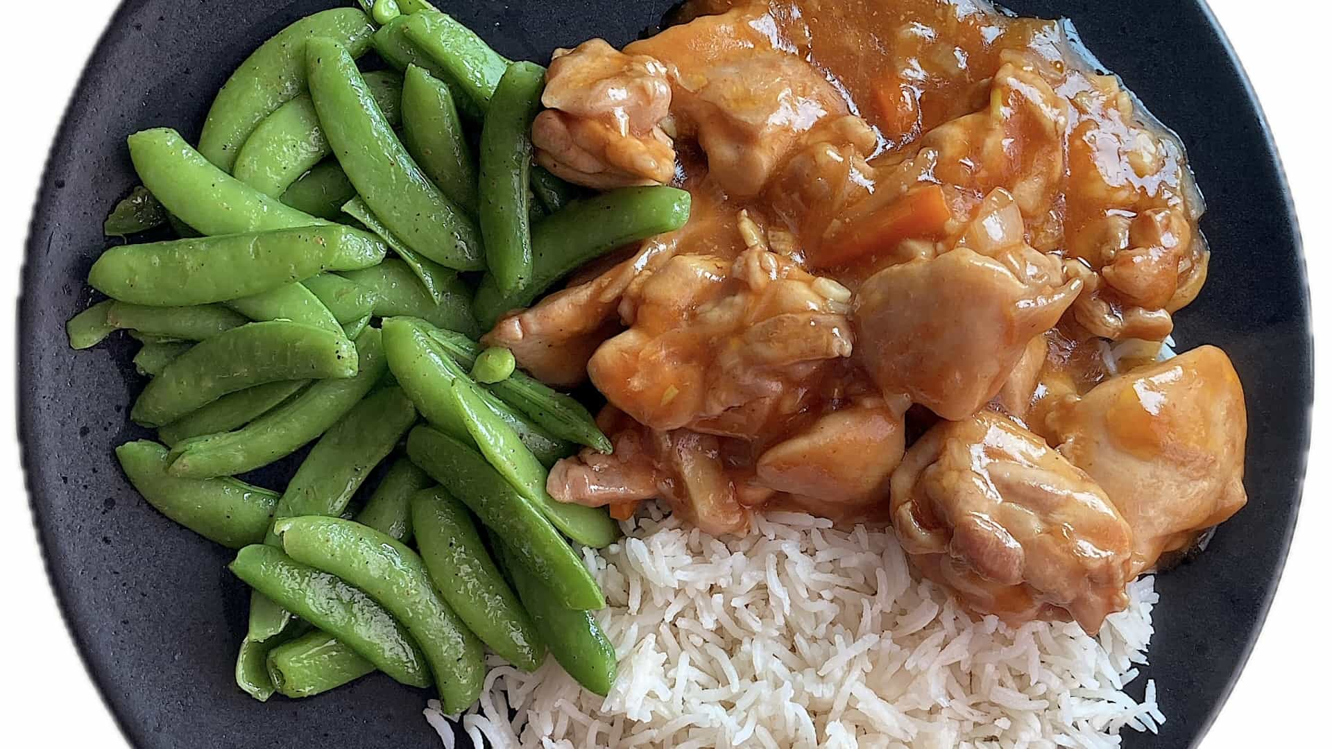 Je hebt een braadpan of hapjespan met deksel nodig, voor de rijst een koekenpan en voor de sugarsnaps een kookpan.