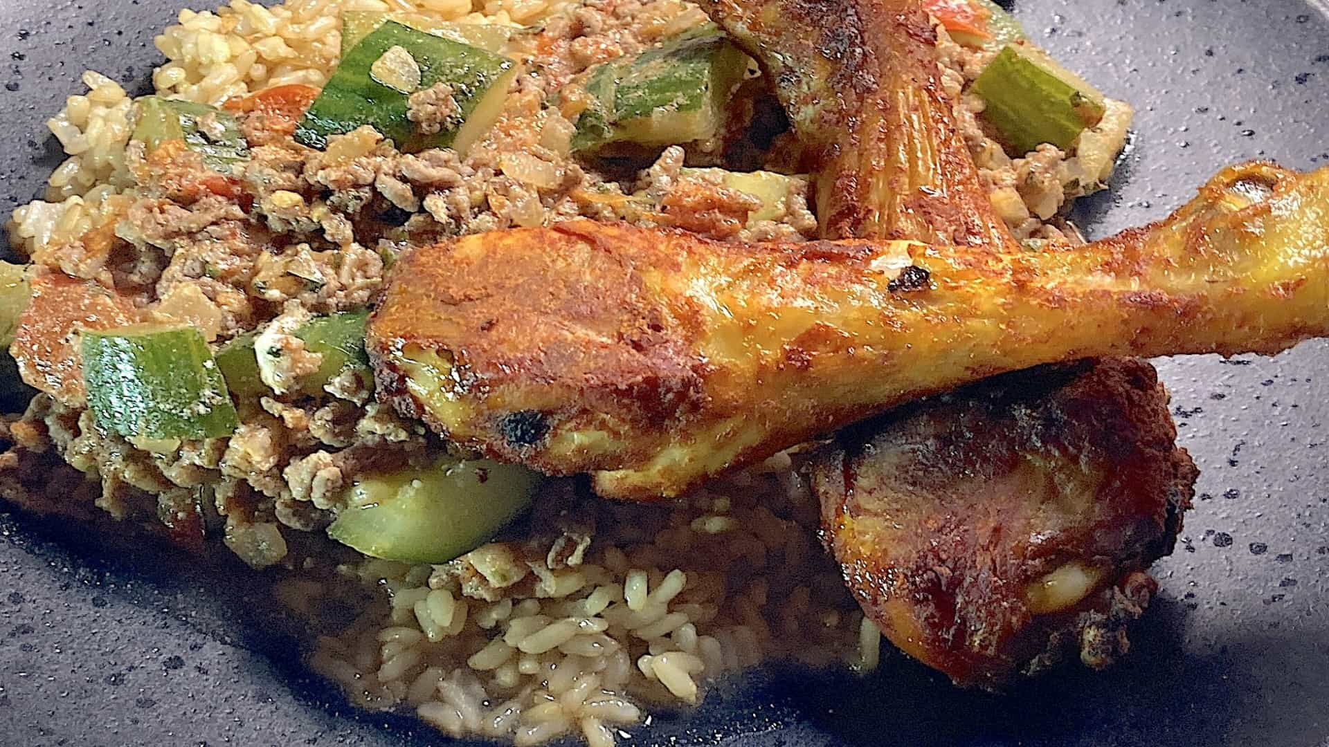 De gegrilde kipdrumsticks kun je ook vervangen voor 1 hele gegrilde kip, 2 halve kippen, gerookte kipfilet of Crispy Chick'n.