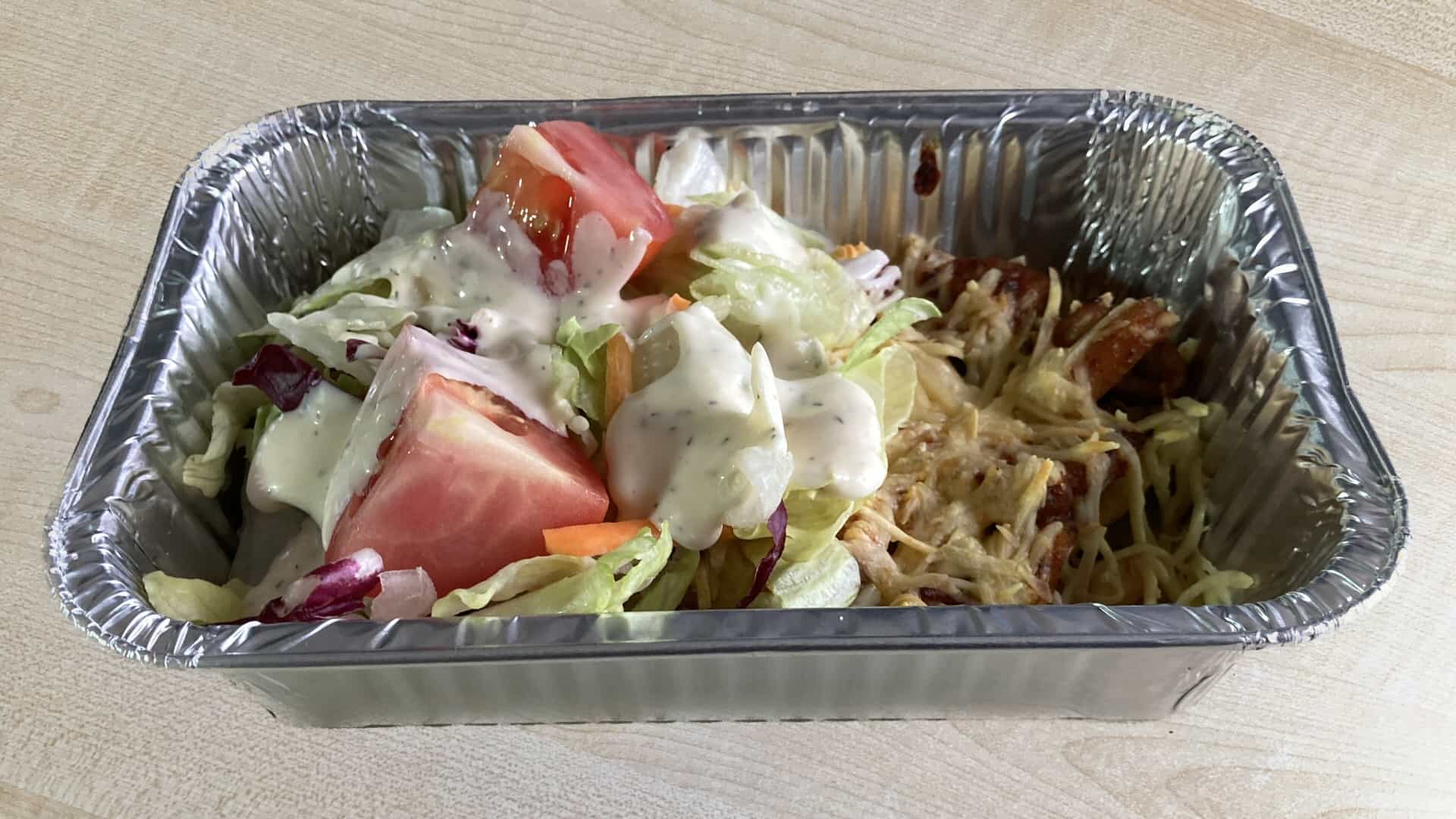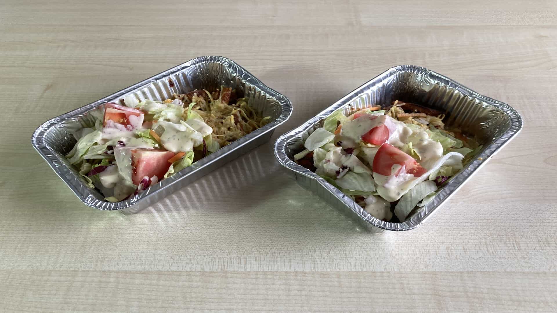 Serveer de kipsalon in originele aluminium bakjes of in een ovenvast schaaltje in hetzelfde formaat. Wel zo leuk!