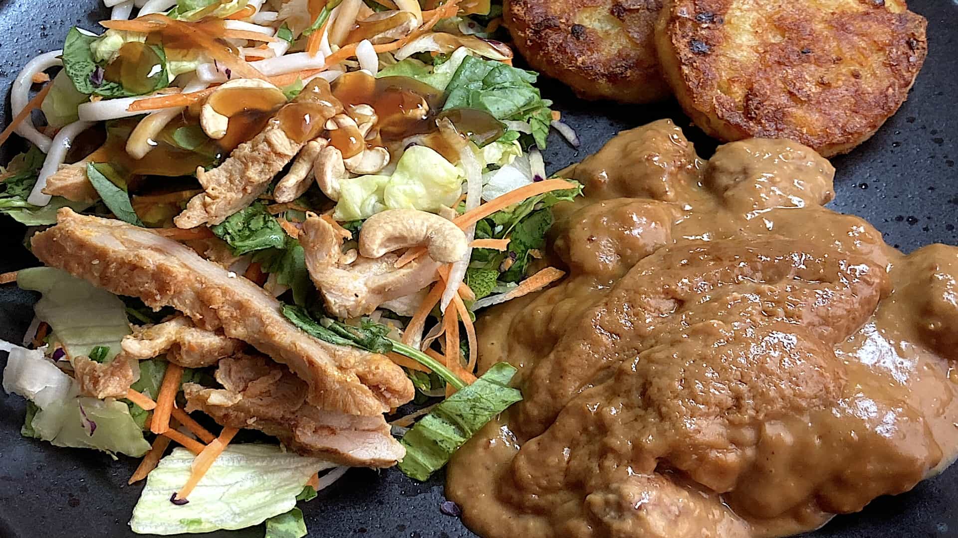 Voor de kipsate heb je een magnetron nodig en voor de röstirondjes een koekenpan.