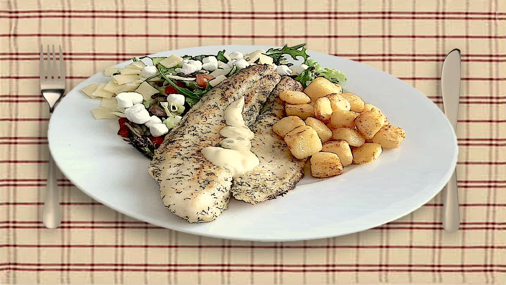 Voor je portie Omega-3 met knapperige aardappel kroketjes en Haricots verts.