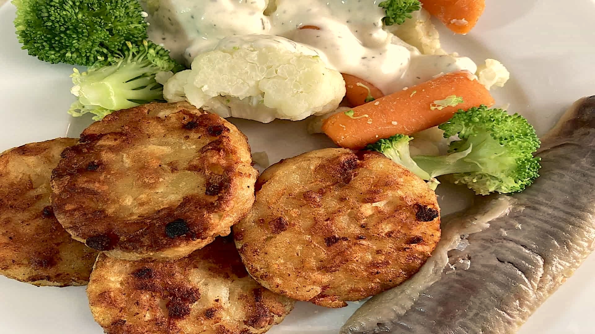 Voor de groente heb je nodig een magnetron of kookpan en voor de röstirondjes een koekenpan.