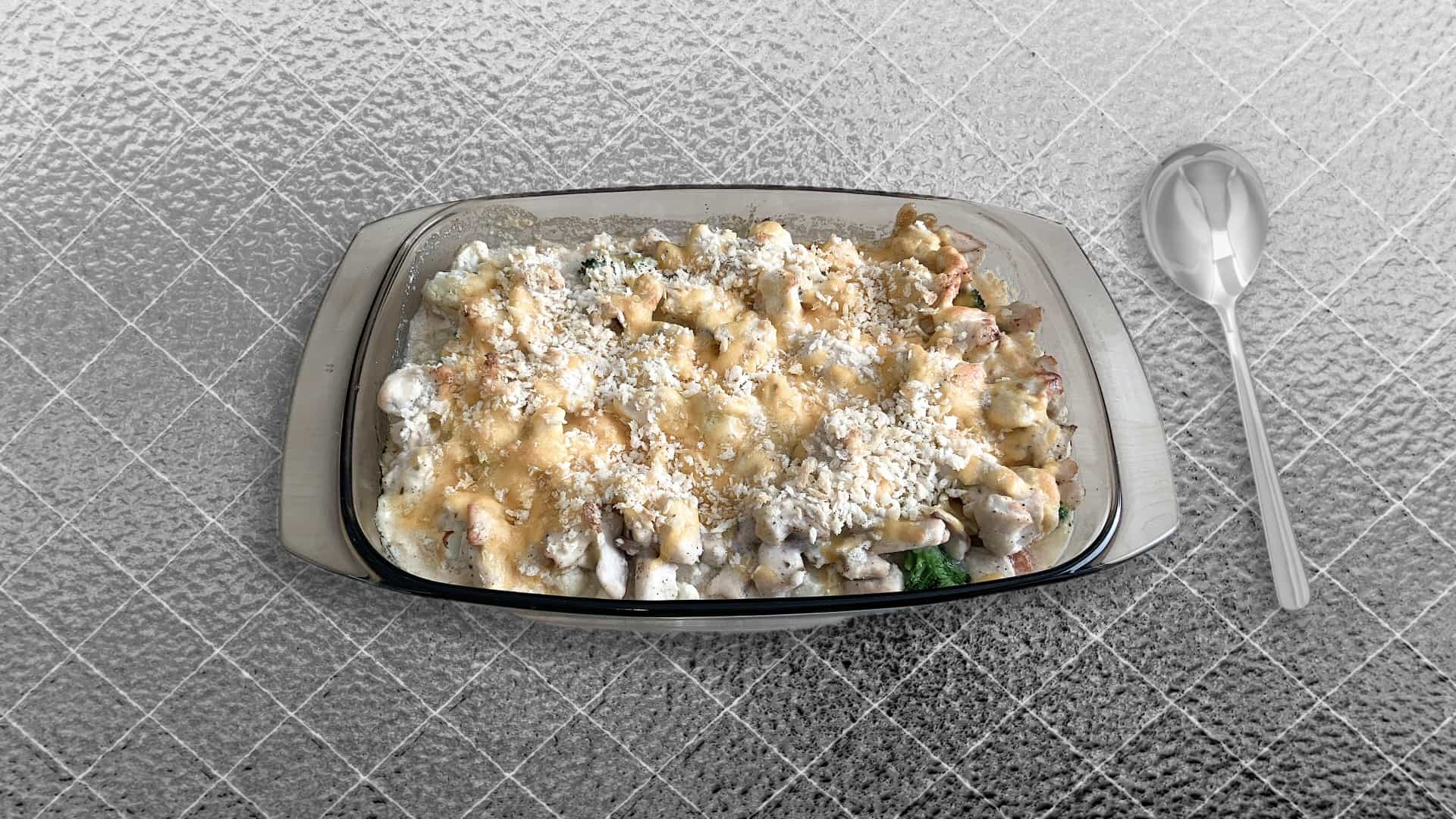 Voor de kip op divan ovenschotel heb je nodig een flinke ovenschaal. Pakweg 30cm lang.