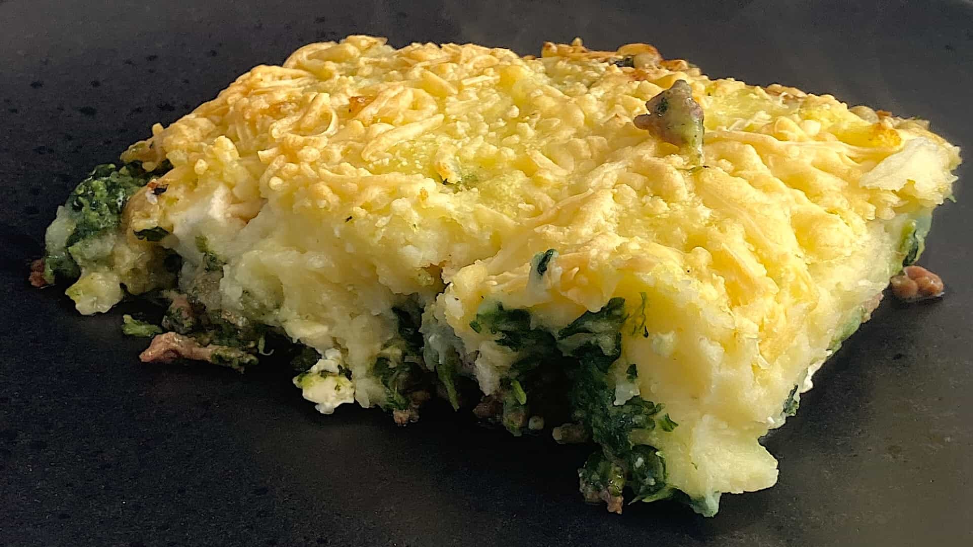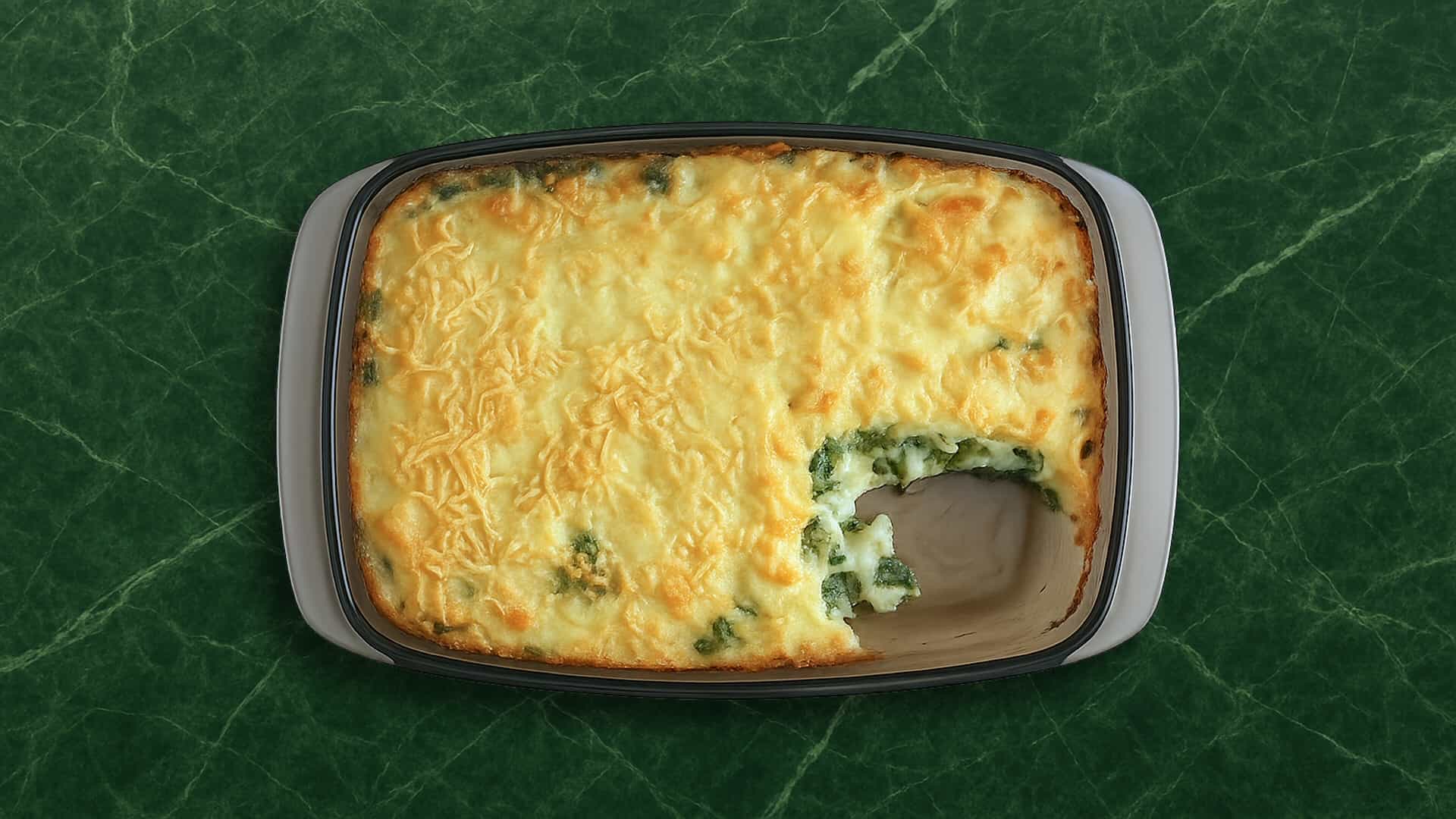 Serveer de ovenschotel met de ei partjes op een bord.