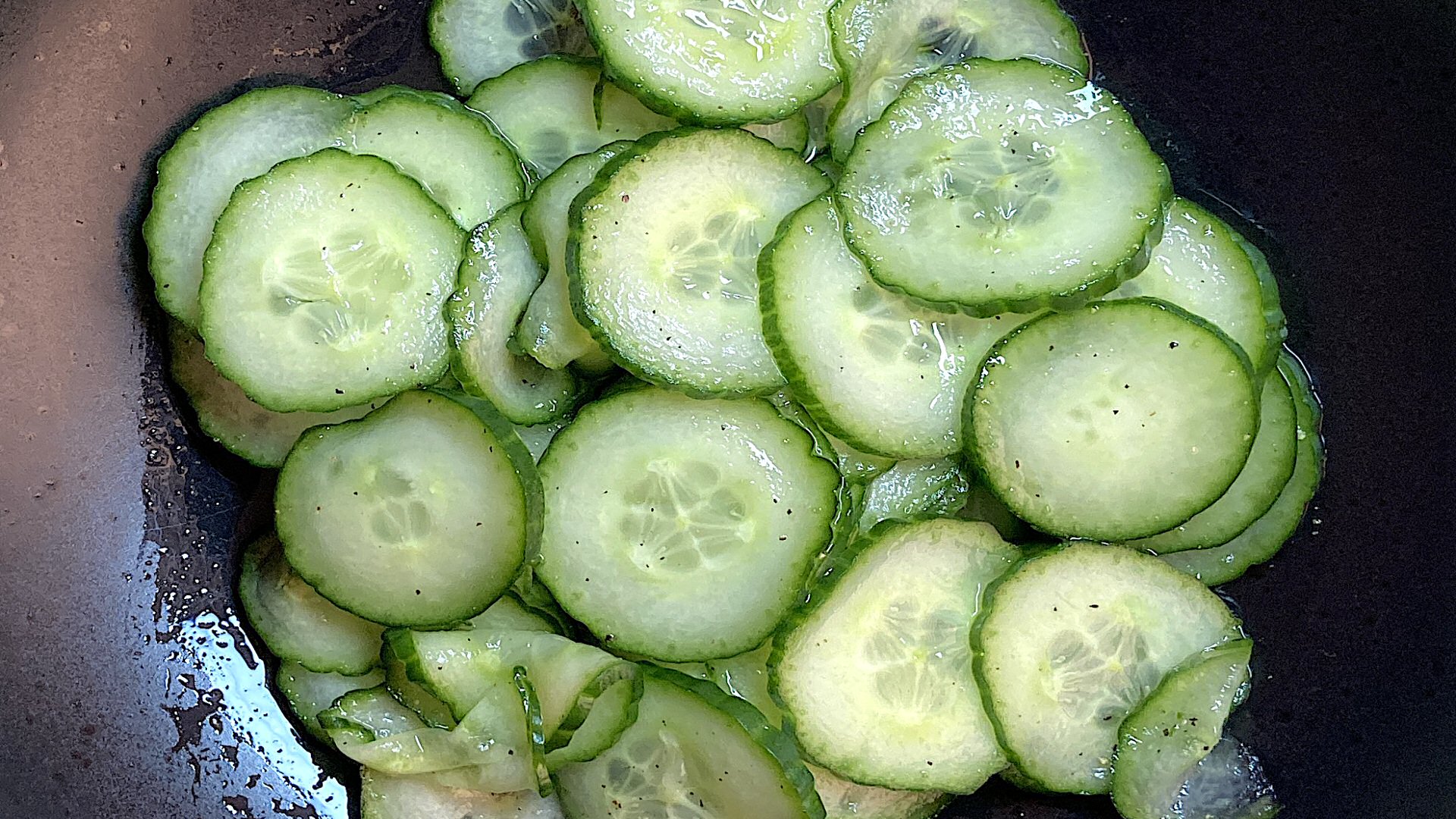 Serveer de komkommersalade op een bord of in een schaaltje.