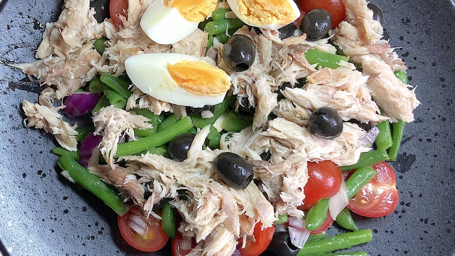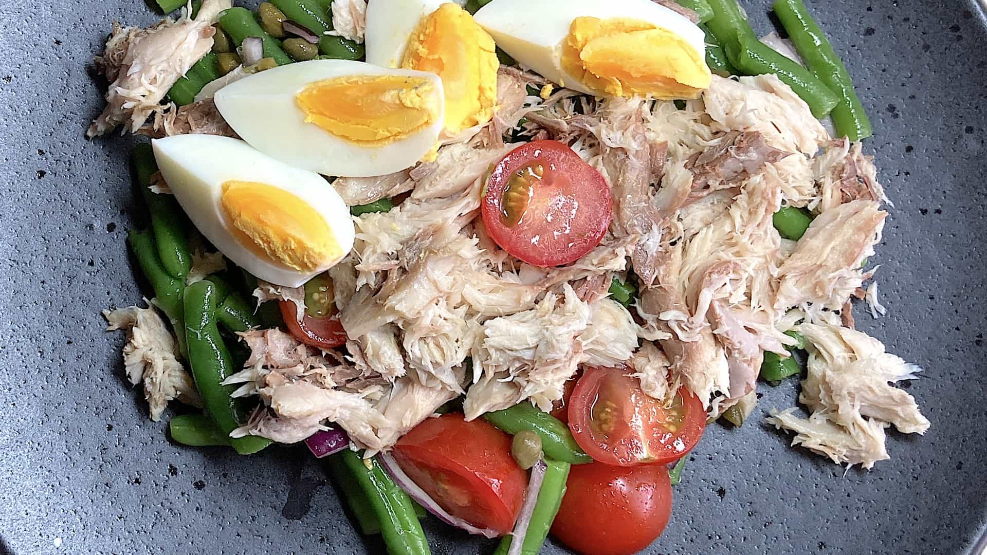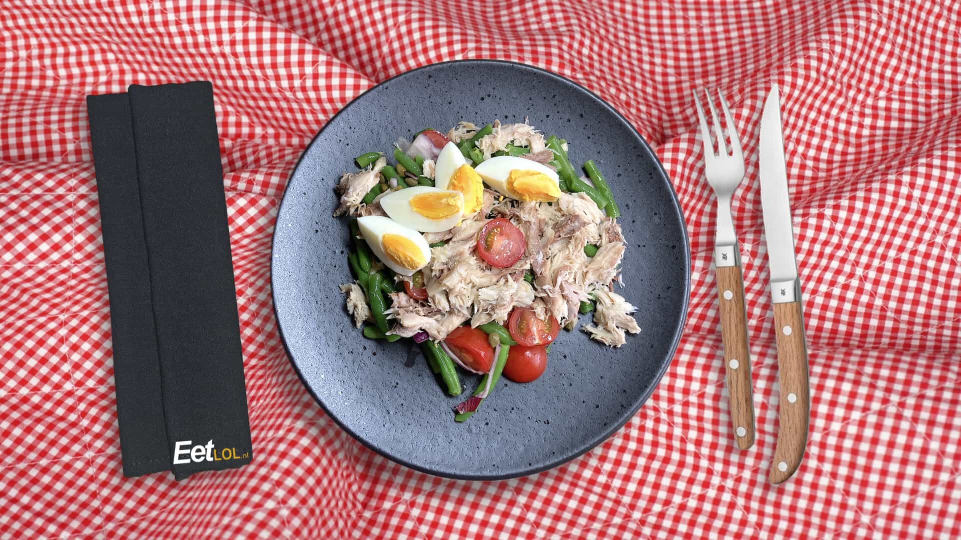 Serveer de salade op een plat bord. Besprenkel met wat citroensap.