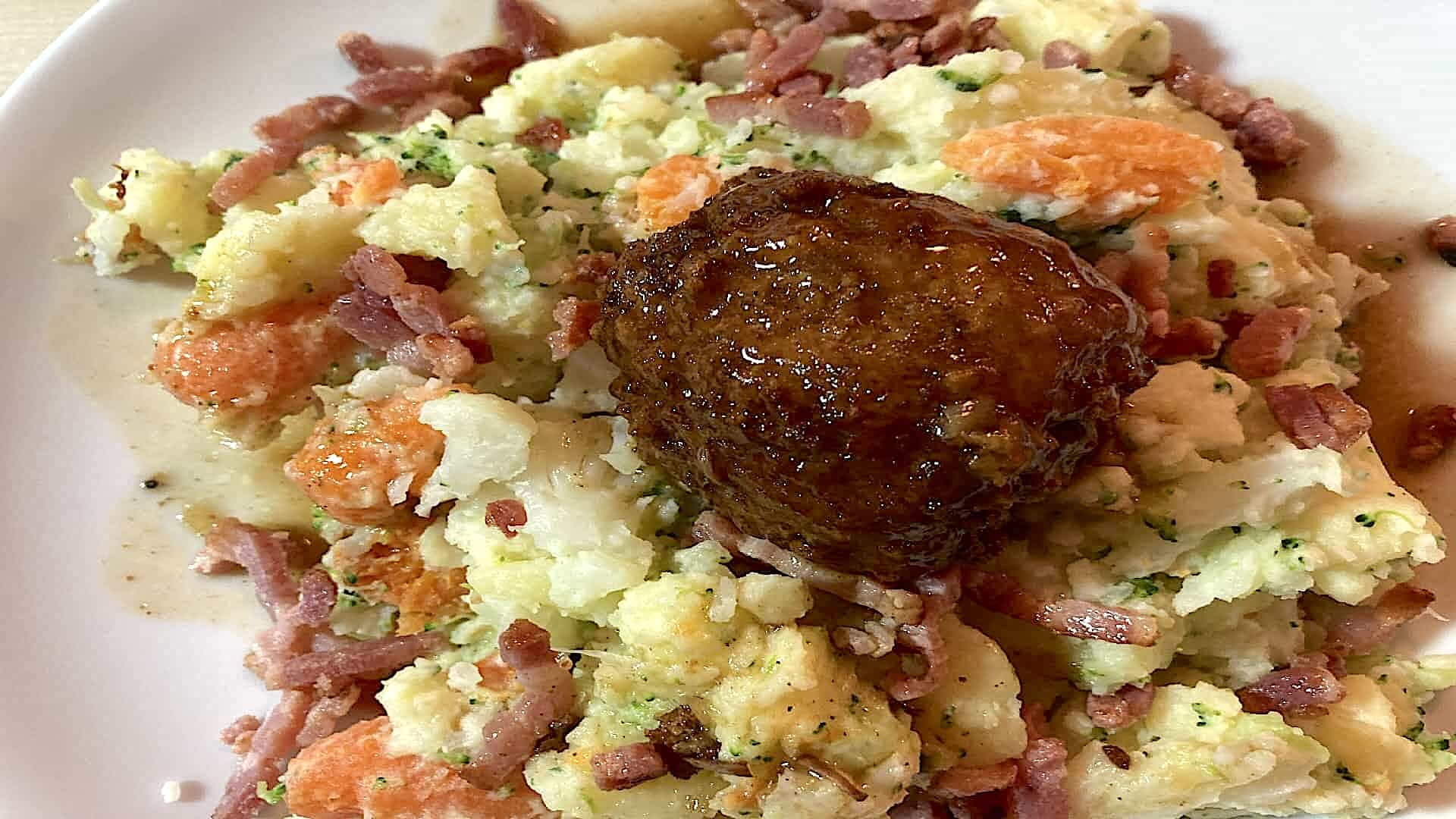 De bereiding is eenvoudig. De aardappelen en de groente kook je in een ruime pan. Voor de gehaktballen heb je een magnetron of oven nodig.