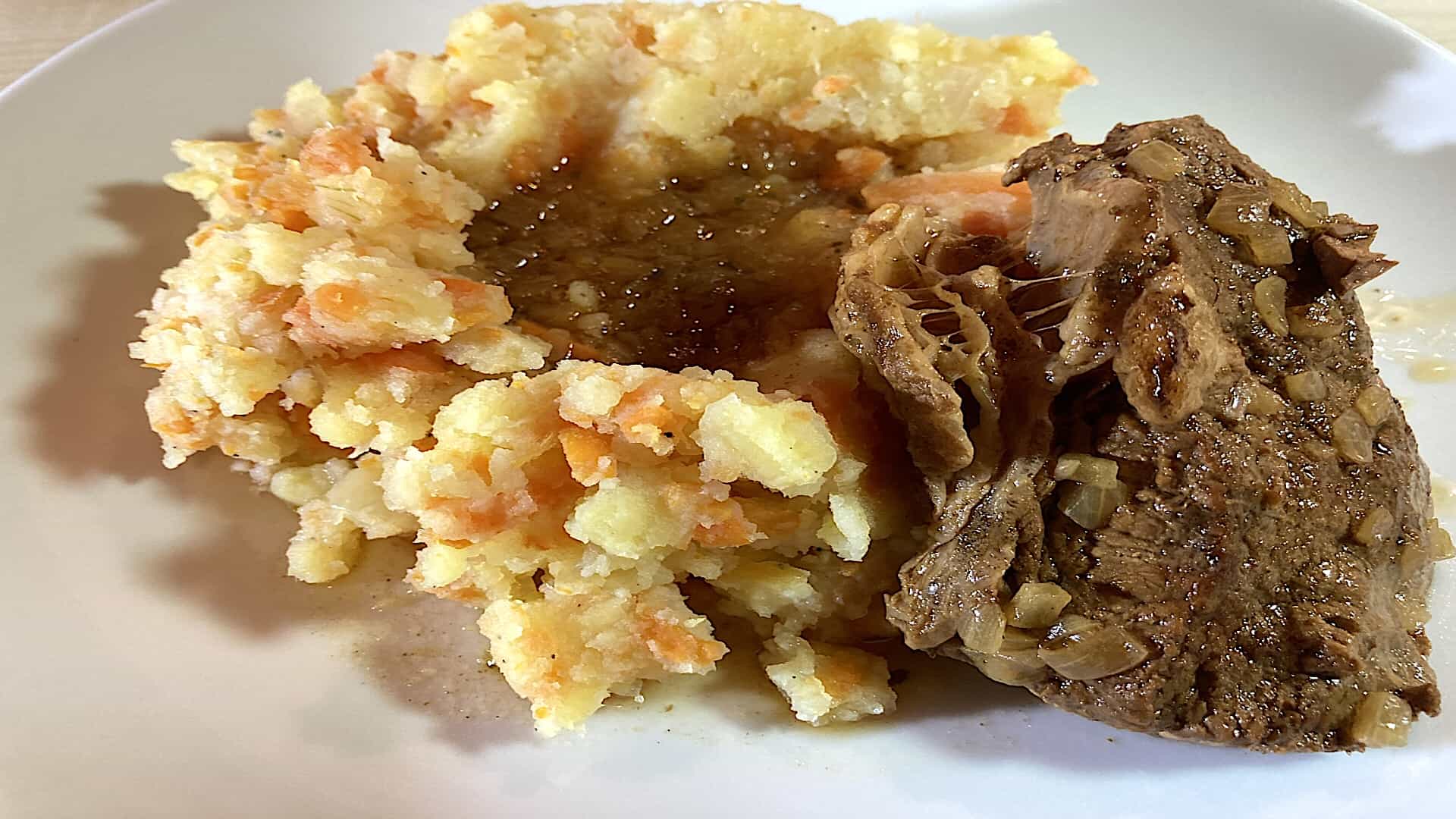 Kies je voor draadjesvles bij deze stamppot? Kijk dan hier hoe je dat doet.