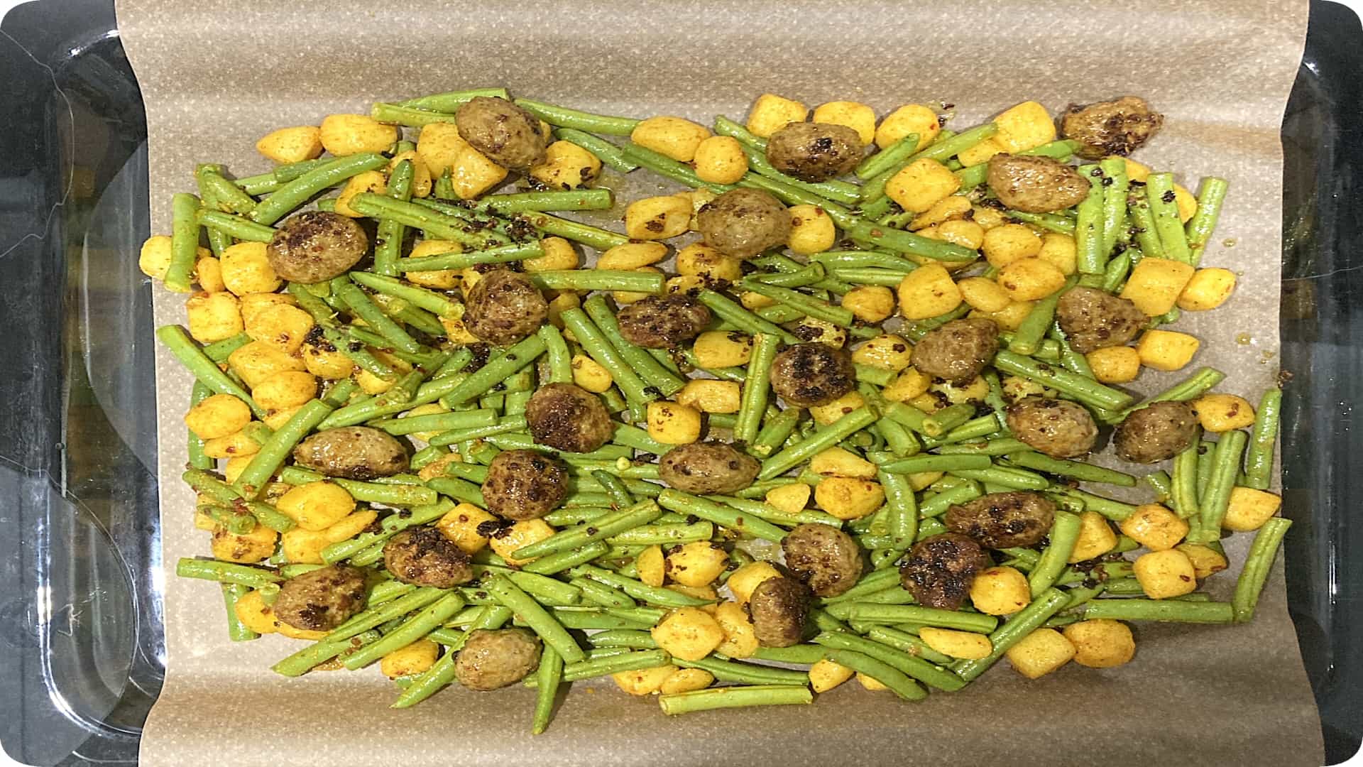 Voor de traybake heb je een mengkom, oven en bakplaat nodig. Voor het bakken van de soepballetjes een koekenpan.