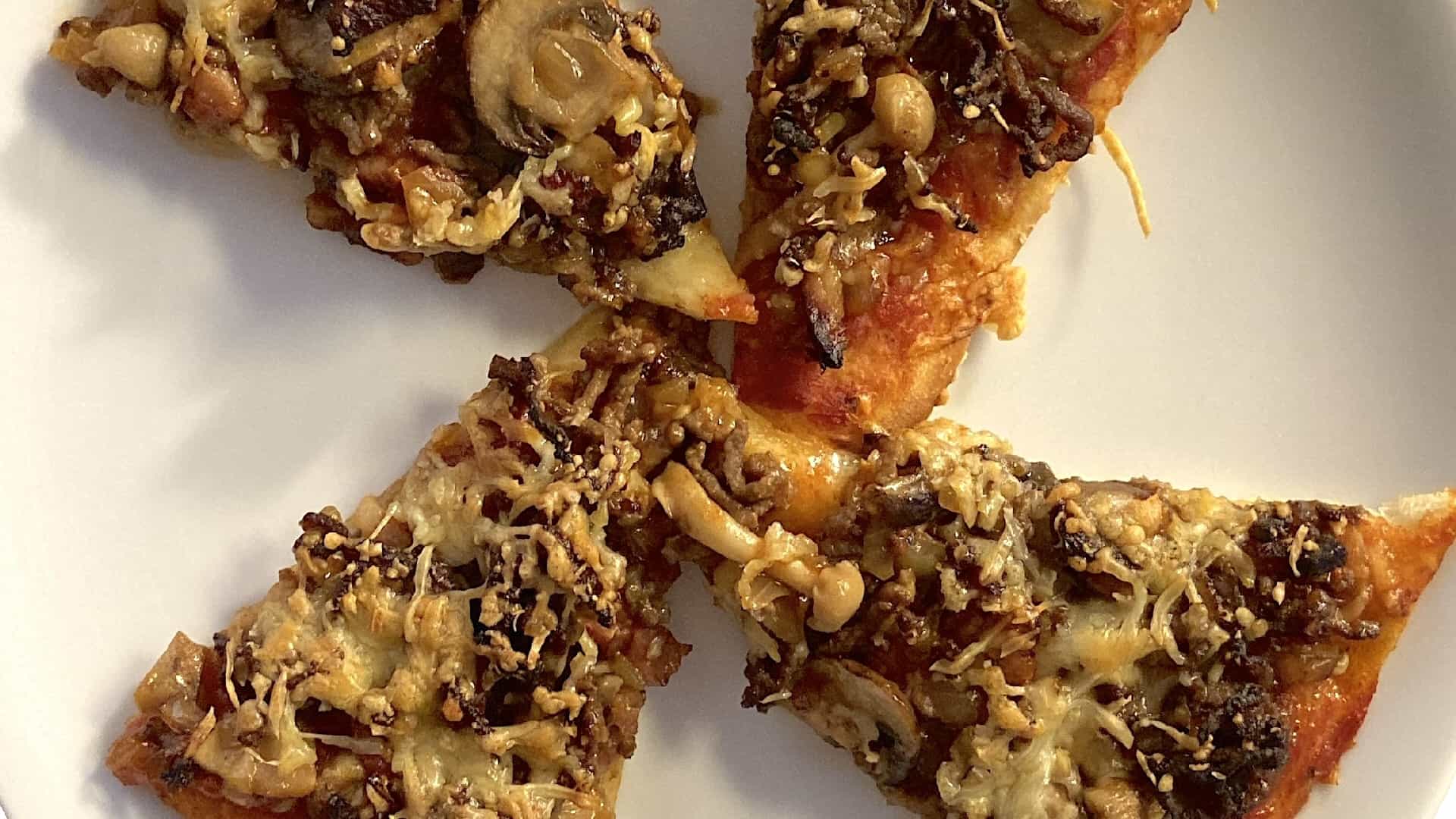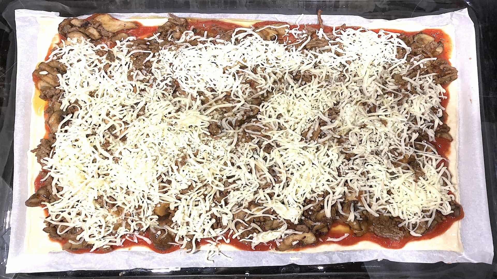 Je hebt een oven met bakplaat en koekenpan voor gehakt en champignons nodig.